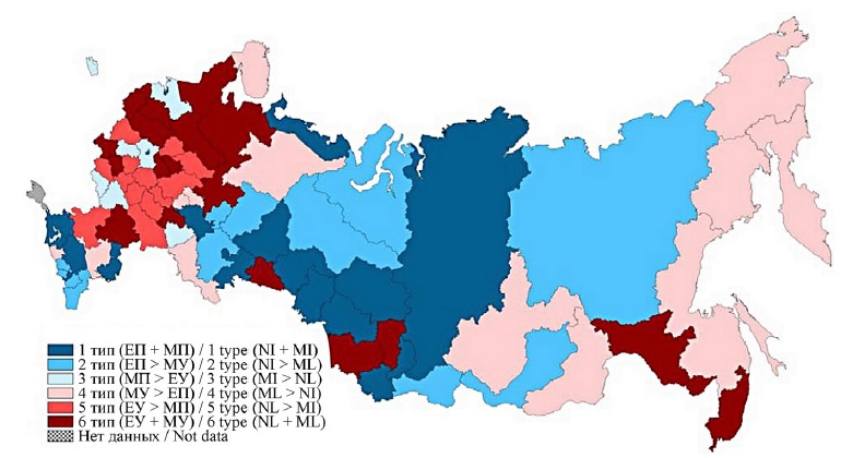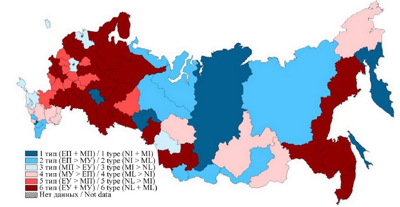 Fig. 1. Typology of the demographic development of Russian regions in 2014: