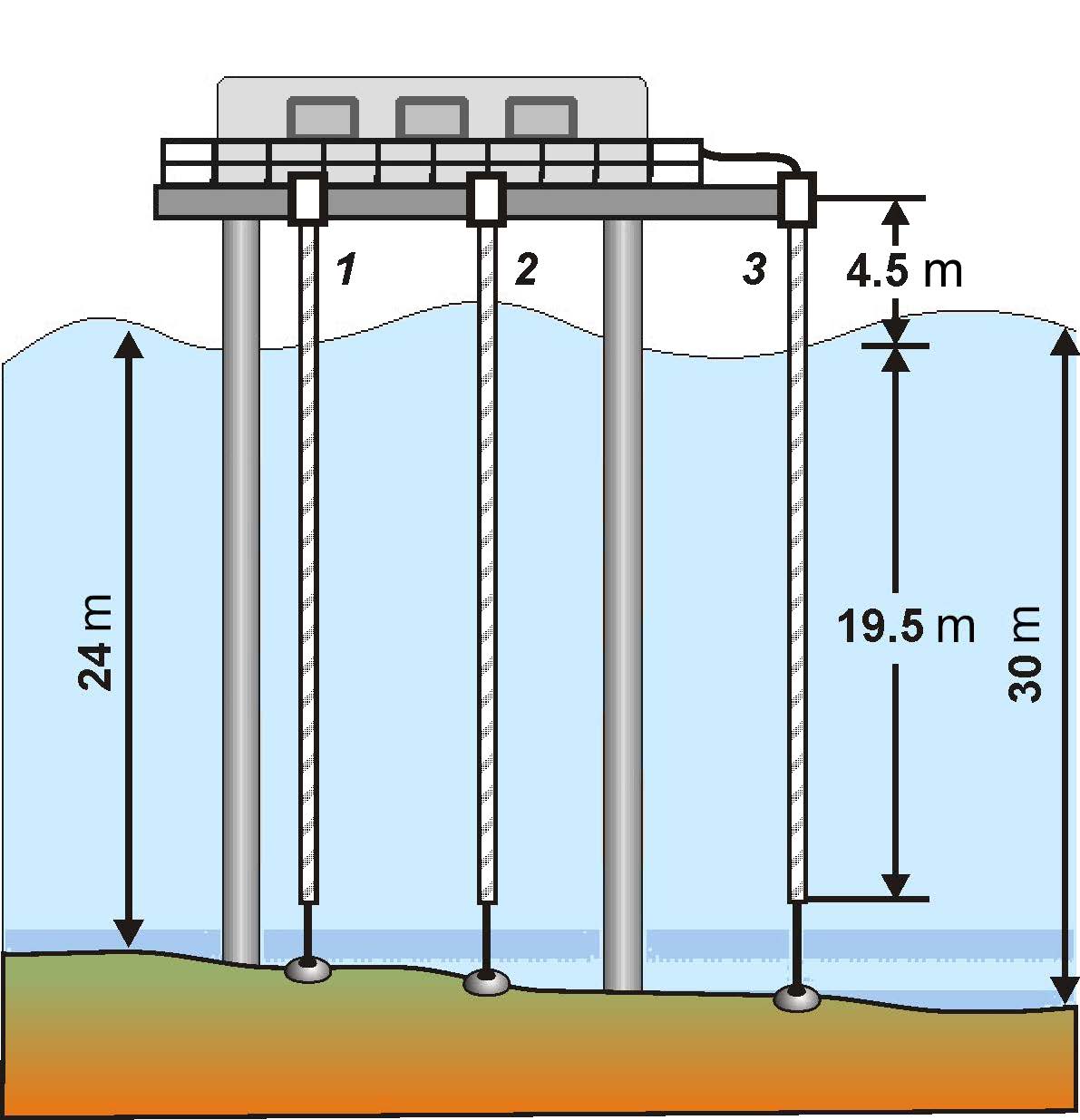 Fig. 2. Depth profile at the installation site of the system and vertical placement of the thermoprofilemeters (1–3)