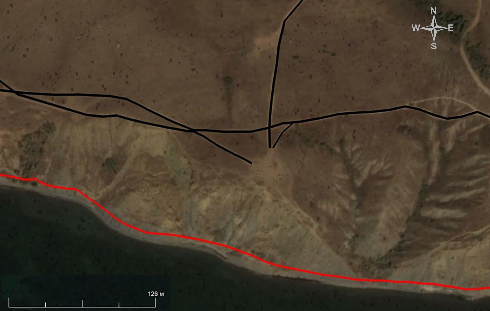 We analyzed the materials of the Koktebel Bay surveys in 2009 and 2021 carried out by Marine Hydrophysical Institute of Russian Academy of Sciences (MHI). The work used the data on the digitizing of coastlines in space images of the Google Earth service for 2011–2021. At the same time, to compare the coastlines, they were additionally referenced by clearly visible landmarks on the coast of the urban-type settlement of Koktebel due to insufficient reference accuracy for our purposes. Since there were no such landmarks outside the settlement, the images were referenced to coastal roads, which are fairly stable elements of the landscape. In addition, literary and archival sources were used, mainly departmental reports of liquidated organizations (Division of Landslide Protection, Yalta Team of KrymMorGeologiya Association, Institute of Mineral Resources of the Ministry of Geology of the Ukrainian SSR). An electronic archive of photographic images of the Crimean Peninsula coasts created at MHI was also used.