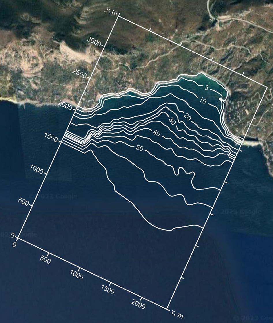 sediments were discovered starting at a depth of 3 m [6]. The bay, which in the 1980s was a model of the natural ecosystem of the Black Sea, has lost this status. A bottom natural complex devoid of vegetation has been formed in its central part [9]. Over a period of more than 30 years, the bay has undergone significant structural changes in the vegetation species composition and changes in the configuration
