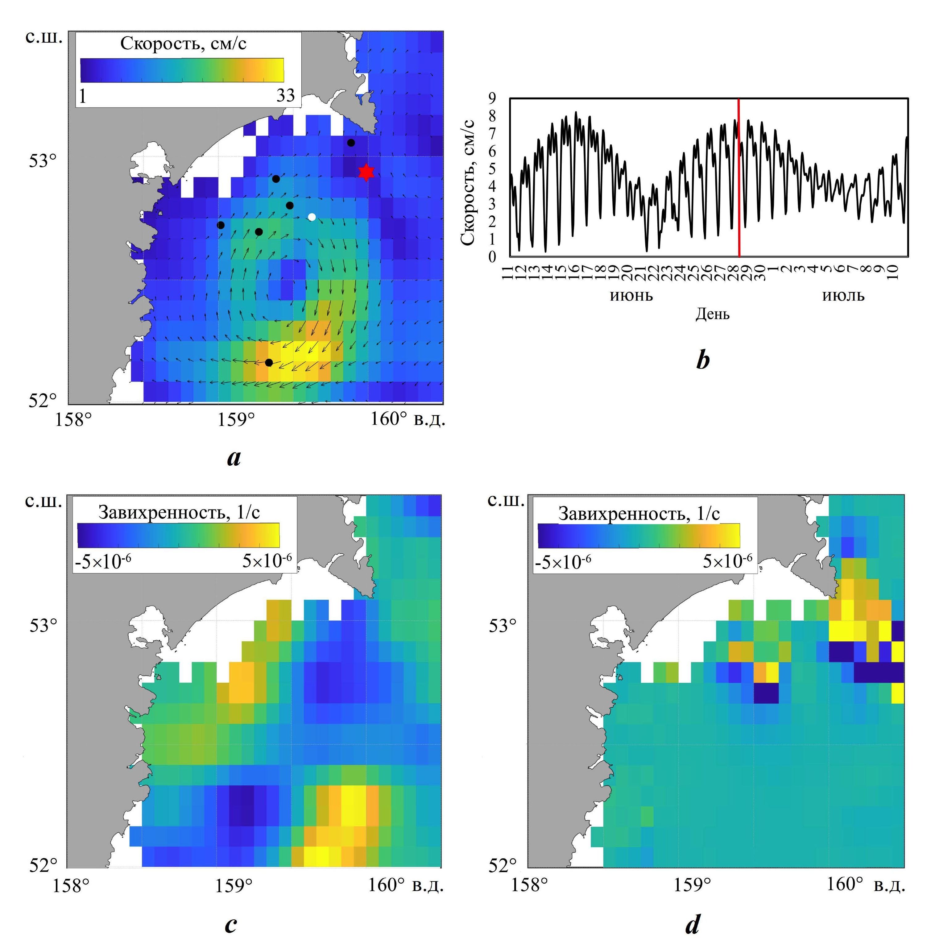 Наконец, отметим, что результаты глобального широко используемого реанализа океана CMEMS GLORYS12v1 не отражают многих особенностей разномасштабной вихревой динамики в регионе, в частности не показывают наблюдаемую картину мезомасштабных вихрей в Авачинском заливе. Это подтверждает необходимость развития и усовершенствования моделей высокого разрешения для данного региона, что мотивирует дальнейшие исследования.