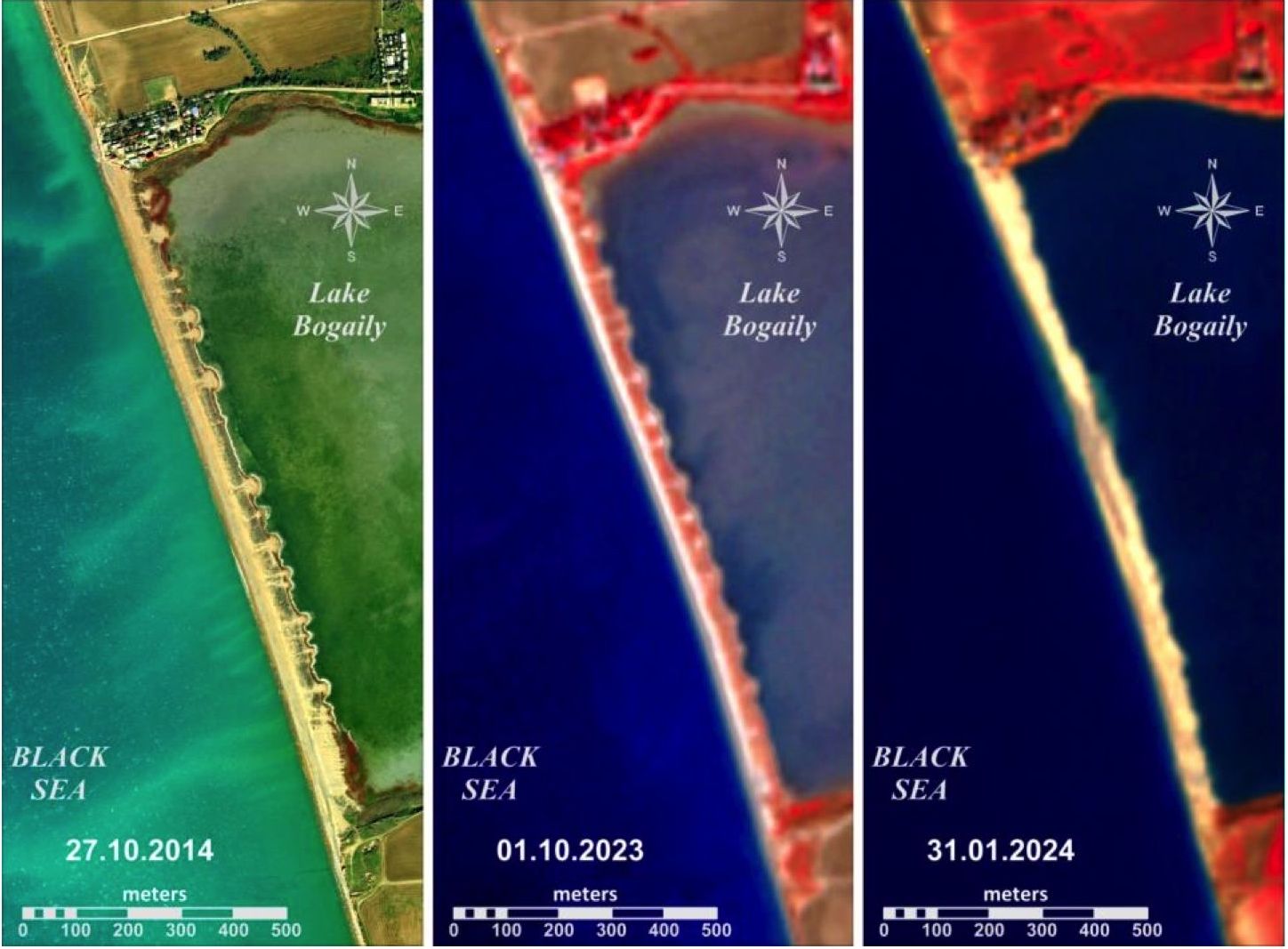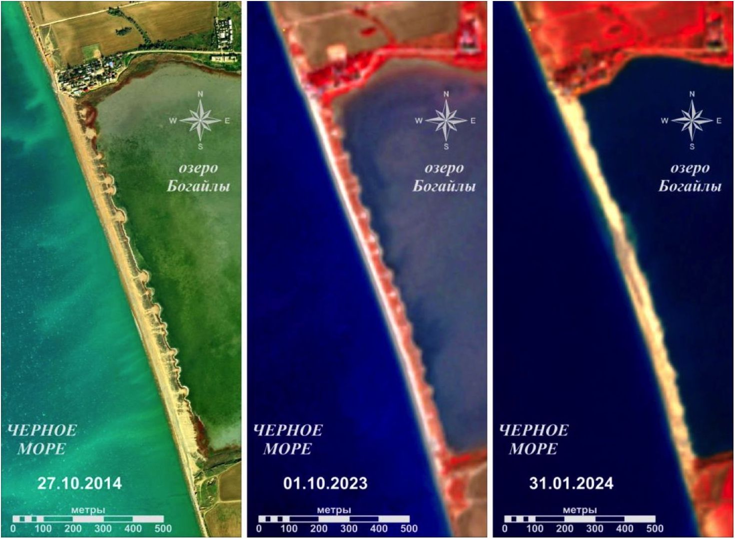 Fig. 4. Development of the Lake Bogaily Barrier Beach in 2014–2024