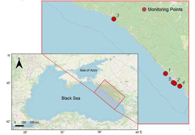 The study area is located in the north-eastern Black Sea coast (Fig. 1). According to [3], the study area is one of the most polluted parts of the coast.