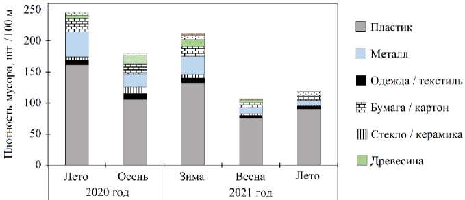 Fig. 2. Seasonal distribution of marine litter on Maly Akhun Beach