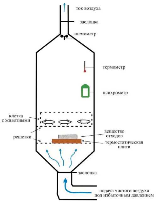 За час до исследования в первую камеру помещали пробу вещества массой 1500 г в лабораторной фарфоровой емкости, установленной на электропечь. В пробу добавляли дистиллированную воду в количестве 100–150 мл для испарения. Для нагрева вещества использовали лабораторную электропечь с контролируемым датчиком температуры. Температуру поверхности электропечи выставляли на 120 °С для постоянного нагрева образца до 50 °С по всему объему до получения устойчивой концентрации пара в первой камере. Мониторинг нагрева вещества выполняли с помощью ртутного градусника ТЛ-2.