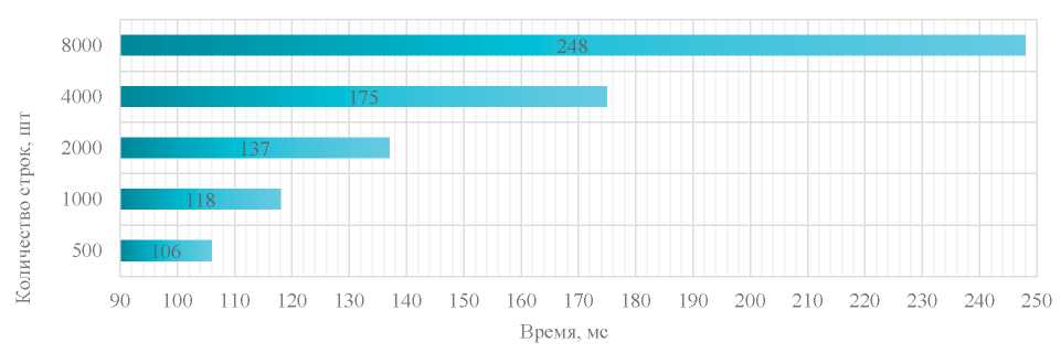 Рис. 2. Зависимость между средней скоростью обучения модели и количеством строк в датасете [составлено авторами]