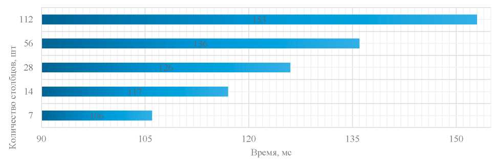 Рис. 3. Зависимость между средней скоростью обучения модели и количеством столбцов в датасете [составлено авторами]