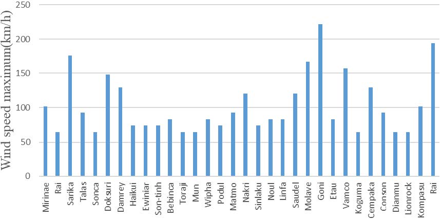 Table 2. Collection of data on storms that directly affect Quang Nam area