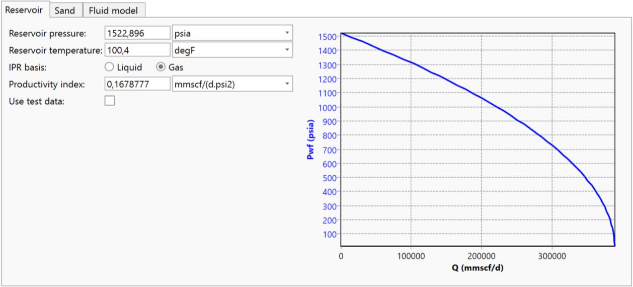 Также существует возможность моделирования искомых параметров для различных конструкционных параметров (диаметр НКТ) или технологических режимов (дебит, забойное или устьевое давления). Для выполнения моделирования помимо уже заданных параметров требуется задать два из трёх компонентов: