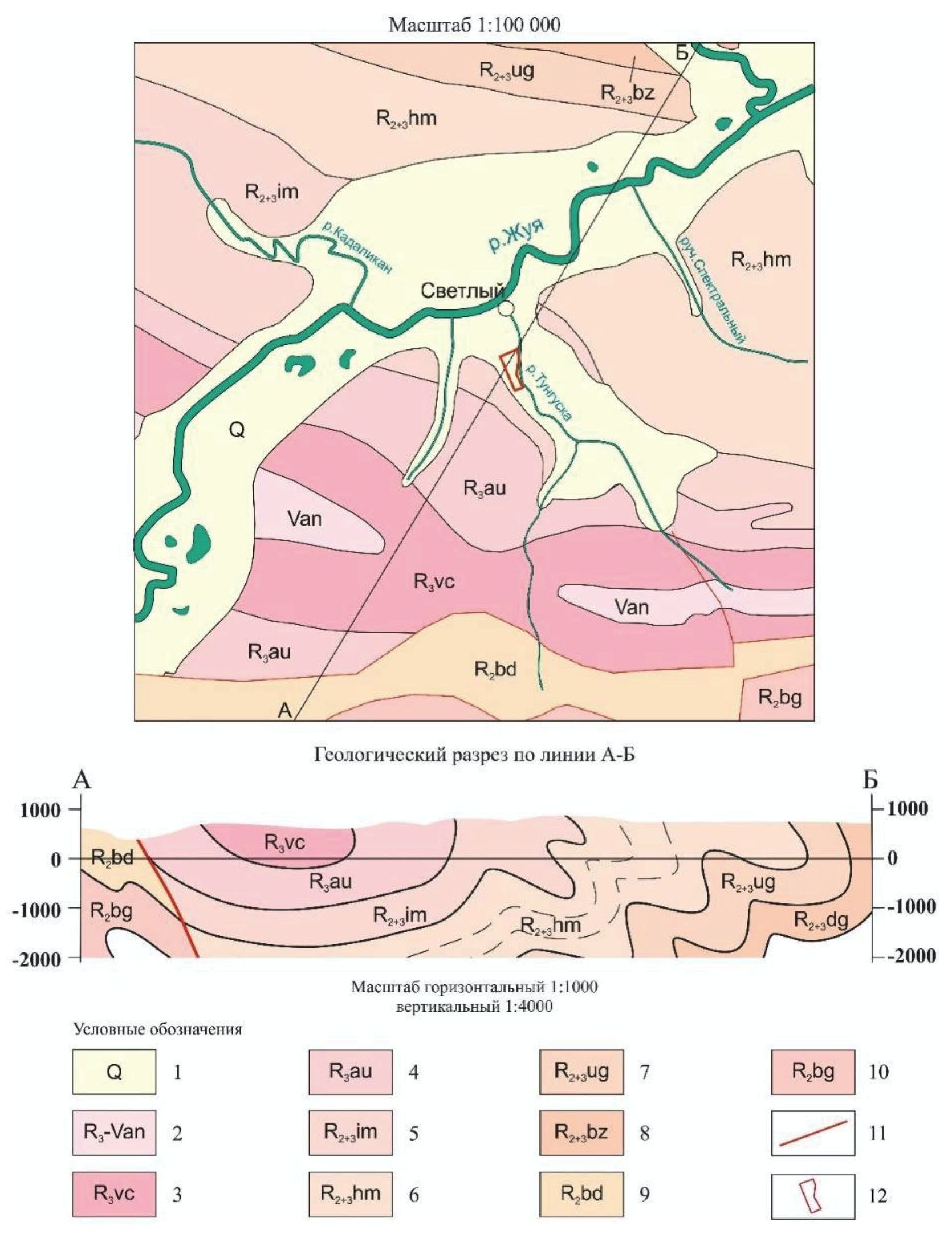 Рифей-вендские осадочные отложения в районе изысканий слагают Маракано-Тунгусскую сложную синклиналь Мамско-Бодайбинского синклинория. В целом разрез отложений характеризуется чередованием в различной степени углеродистых терригенных и карбонатно-терригенных формаций.