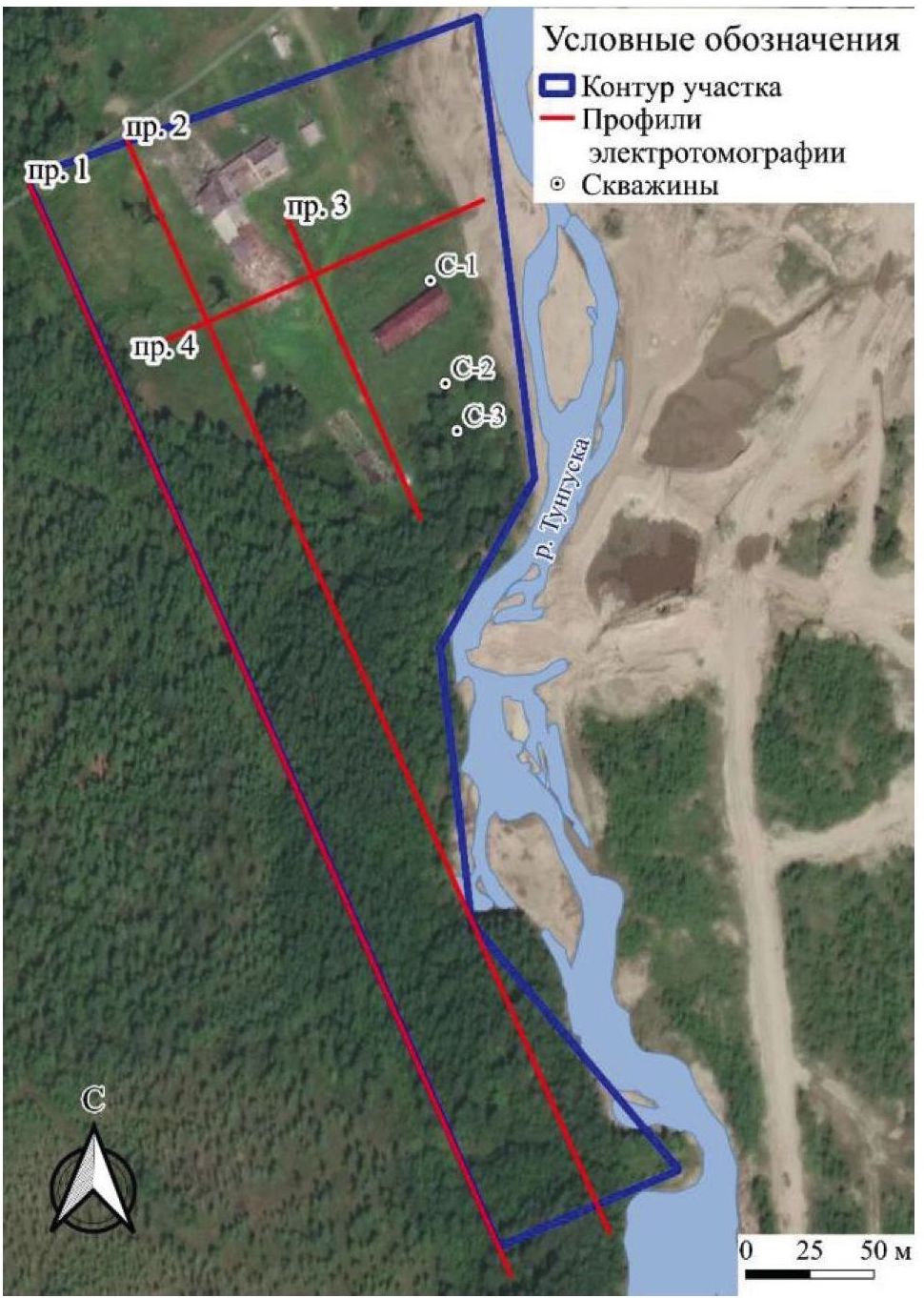 Рис. 2. Схема расположения профилей электротомографии