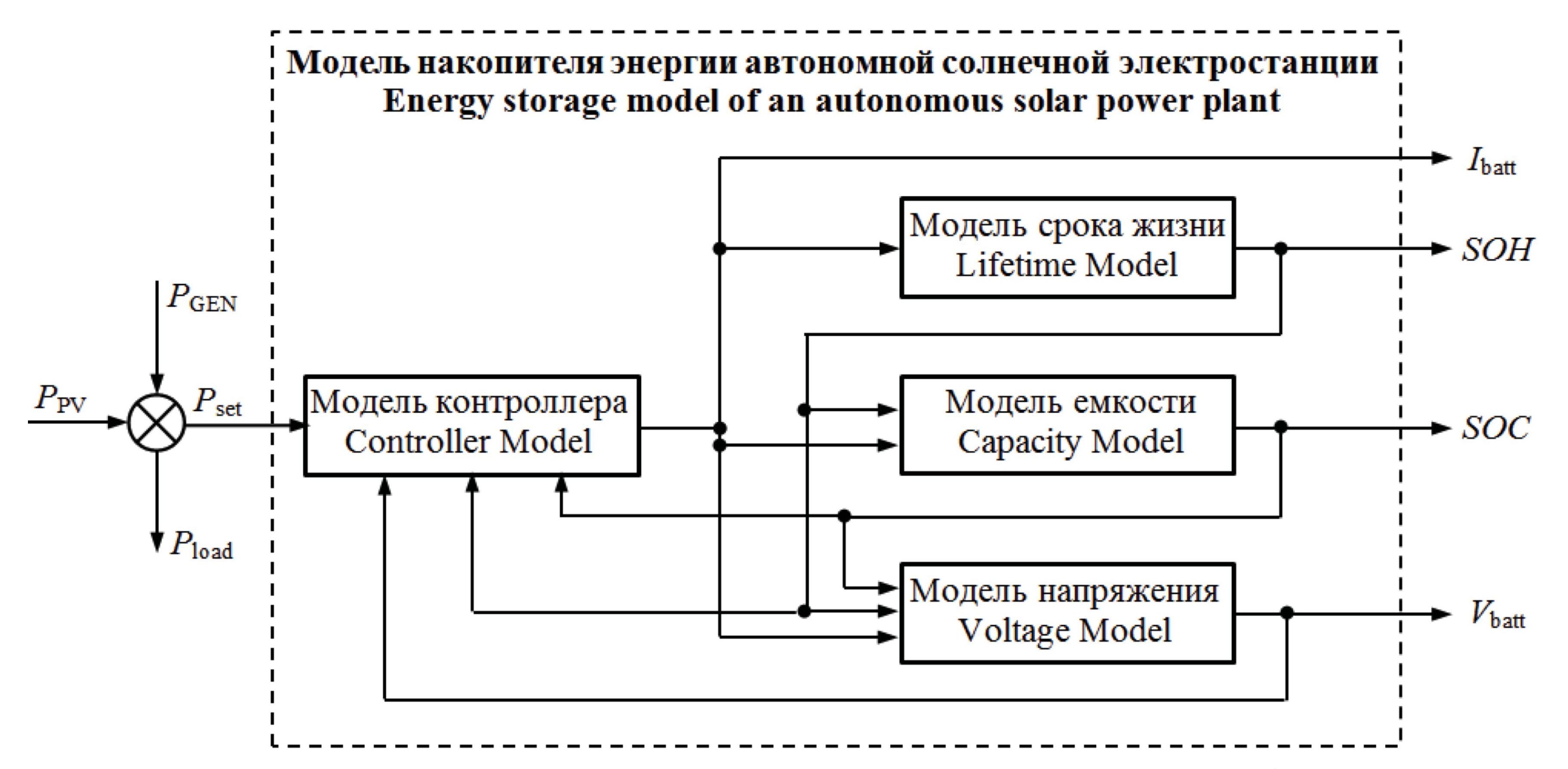 Рис. 4. Упрощенная функциональная схема модели накопителя энергии автономной ФЭС