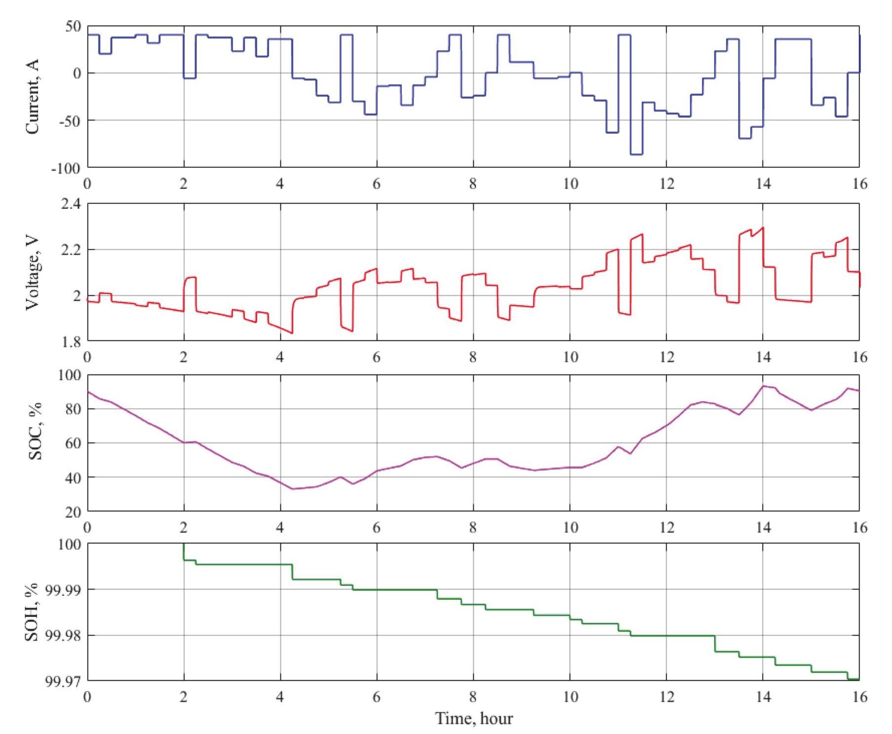 Fig. 3. Time diagrams of changes in battery parameters during operation