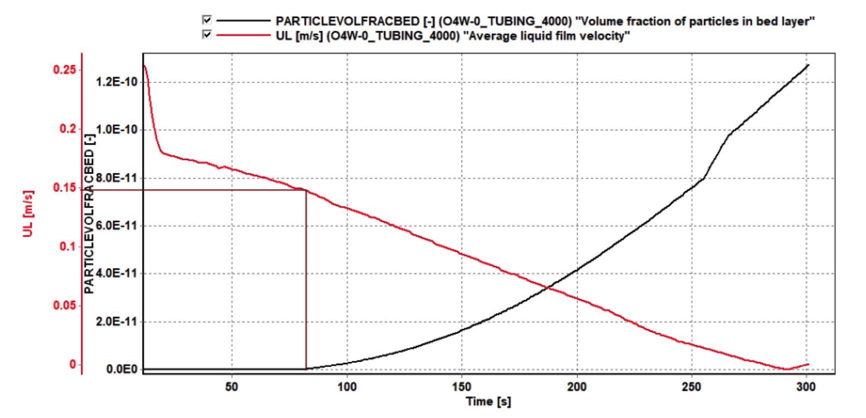 - Обеспечение полного выноса механических частиц может быть достигнуто только за счёт увеличения скорости потока, т. е. за счёт увеличения дебита жидкости на скважине. Для предотвращения образования песчаной пробки в эксплуатационной колонне при обводнённости 4 % критическая скорость потока жидкости должна превышать 0,123 м/с, что соответствует дебиту 214 м3/сут.