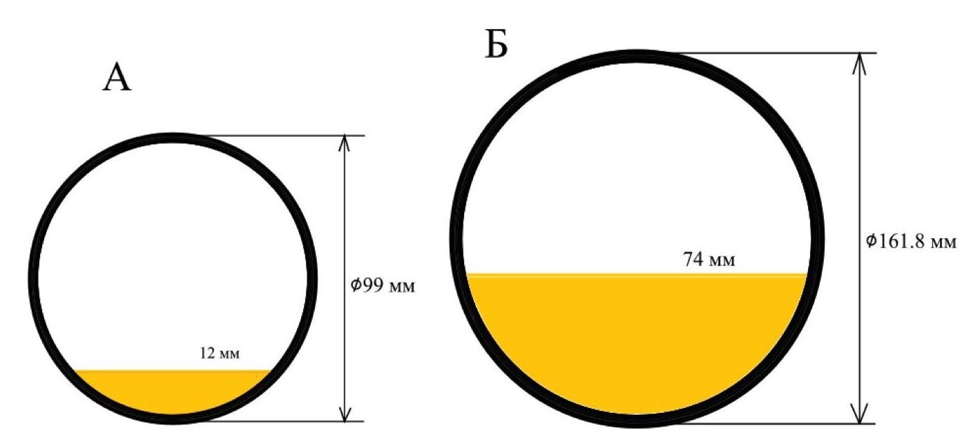 Зная внутренний диаметр колонн (хвостовик – 99 мм, эксплуатационная колонна – 161,8 мм), можем рассчитать время полного перекрытия поперечного сечения трубы: