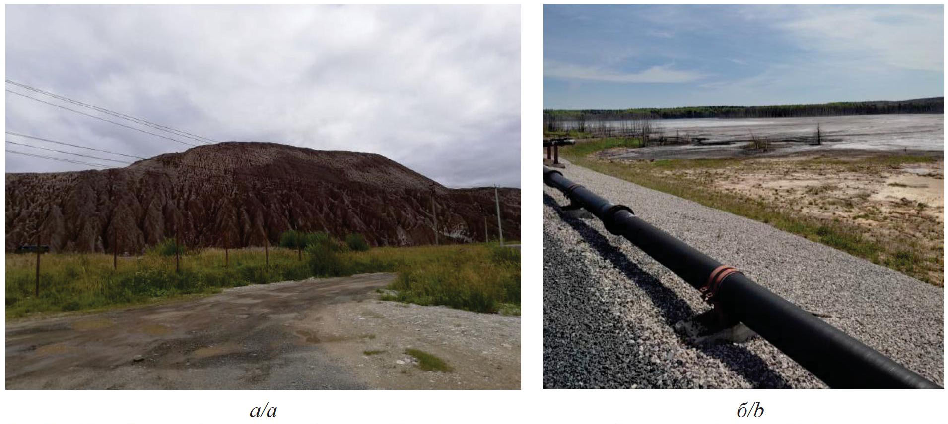 Отходы калийной промышленности представлены галитовыми отходами, которые складируют в солеотвалы (рис. 1, а), и глинисто-солевым шламом (смесь растворимых и нерастворимых компонентов), который хранится в шламохранилищах на земной поверхности (рис. 1, б).