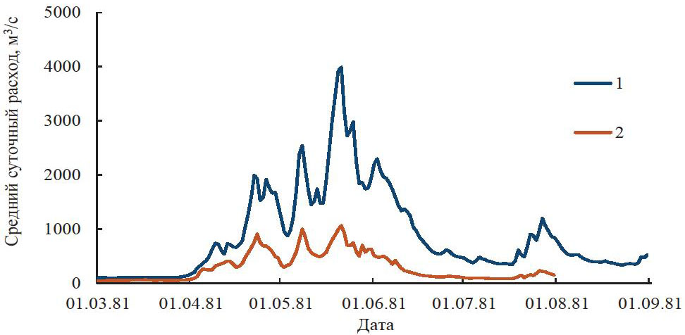 В первом случае, очевидно, это связано с тем, что бассейн р. Абакан приурочен преимущественно к подветренному склону Абаканского хребта, а бассейн р. Тубы – к наветренным склонам Саян. Во втором случае – слишком большая разница площадей (в 20 раз) и средних высот бассейнов. В действовавших ранее СНиП 2.01.14-83 [30] в перечне требований к бассейну-аналогу значилась разница в площадях водосборов – не более чем в 10 раз, а средняя высота бассейнов горных рек не должны была различаться более чем на 300 м. Очевидно, бассейн р. Сыды перечисленным требованиям не соответствует.