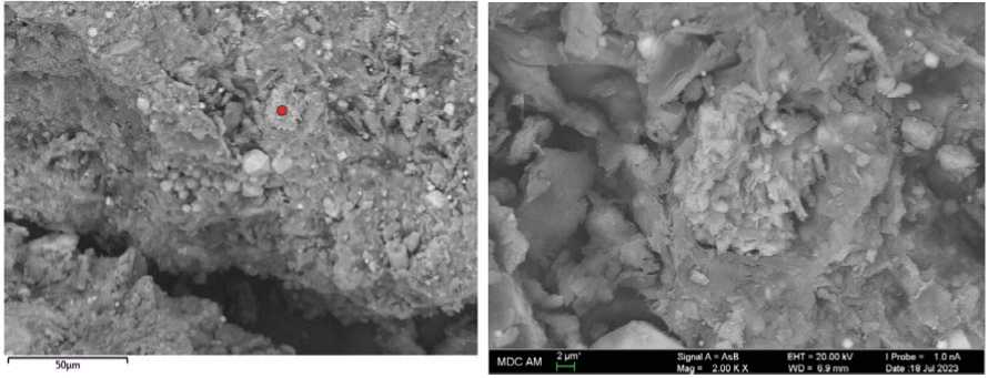 Также доломит был установлен в виде дисперсных кристаллов, прикрепленных к поверхности других минералов с зернами менее 2 мкм (рис. 7) и агрегированных в кластеры (рис. 7).