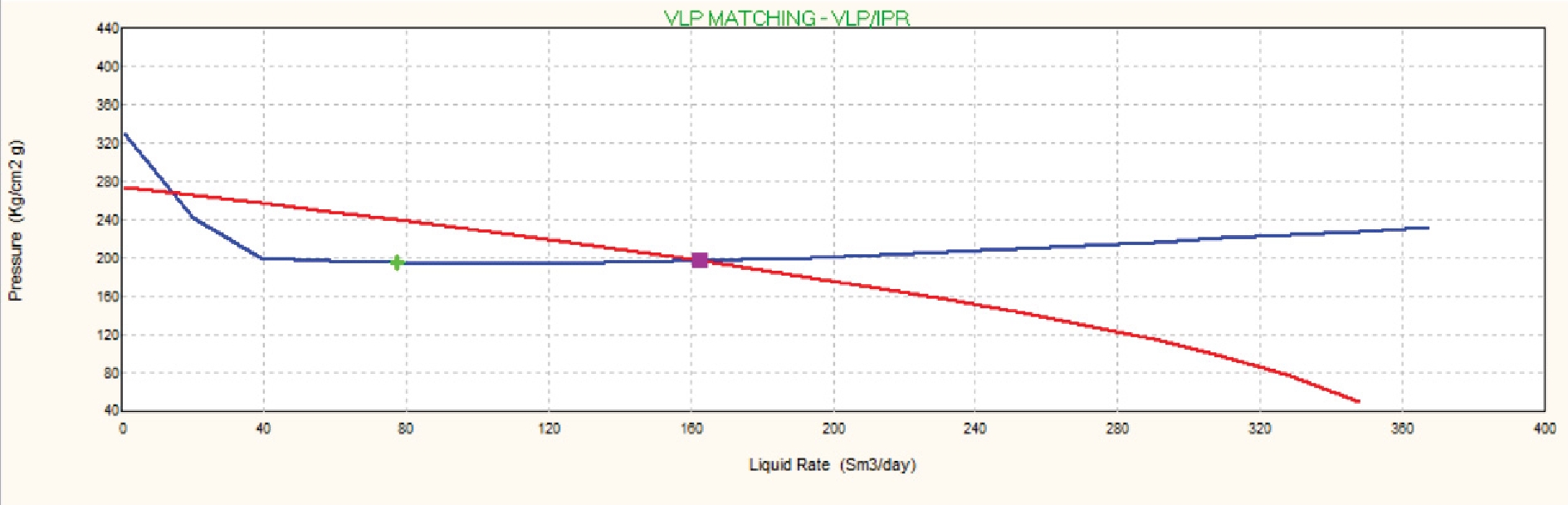 По результатам расчёта оценивается, насколько расчётное значение по дебиту жидкости (пересечение кривых VLP и IPR) совпадает с фактическим. При совпадении расчётного и фактического дебитов в пределах 5 % настройка скважины заканчивается [12].