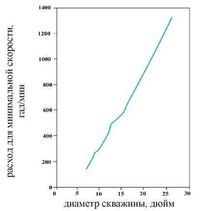 Рис. 2. Зависимость расхода раствора от диаметра ствола скважины при минимальной кольцевой скорости при ρdf≤1,43 г/см3