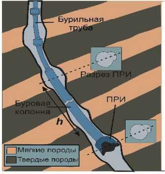 Рис. 9. Дифференциальный прихват в наклонном участке скважины в пластах с твердо-мягкой структурой