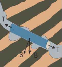 Рис. 14. Определяющие силы, действующие на бурильную трубу в криволинейной области скважины