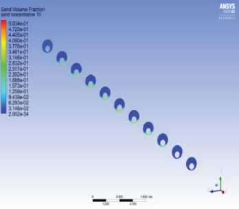 Fig. 17. Variation of the volume fraction of sand particles predicted within the Eulerian–Eulerian method. The conditions are similar to the data of Fig. 16