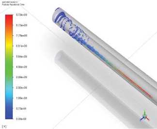 Физическая постановка. Заметим, что подобные исследования достаточно подробно изложены, например, в [42–51]. Отмечалось, что численное моделирование определяющих уравнений представленной математической модели выполнено в рамках физических допущений о движении и седиментации частиц бурового шлама на нижней поверхности наклонного участка скважины. Причем такие допущения характерны для сценария бурения в режиме in situ, где в системе «порода–скважина–оборудование» проявляются эффекты от изменения скорости бурения, площади и диаметра долота, объема и плотности частиц, состава и строения породы. Комплексные эффекты от деформационных, динамических и диффузионных процессов в породе и текущей дисперсной смеси со сложной реологией интенсифицируют процессы взаимодействия узлов оборудования с загромождением сечения частицами выработки. А это, в свою очередь, вызывает неблагоприятные эффекты заклинивания и прихвата труб. Моделирование гидродинамики в условиях ламинарного и турбулентного режима течения смеси выполняется в предположении, что объемная доля твердых частиц определяется величиной порядка αp<O(101), причем эффект от их соударений друг с другом пренебрежимо мал. Более того, отмечается, что по пространству скважины формируется течение капельной несжимаемой жидкости, осложненное нестационарными эффектами загрузки твердых частиц на входе в скважину (в результате дробления породы), а также эффектами от прямоточного и закрученного, вязкостно-инерционно-гравитационного и изотермического, стационарного по условиям входа потока. Распределение загрузки монодисперсных частиц соответствует однородному профилю постоянной интенсивности за единицу времени рабочего процесса. В указанных физических допущениях особенности, сопровождающие процесс гидротранспорта шлама, его взаимодействие с элементами оборудования в режимах, характерных для прихвата, могут быть предсказаны только в рамках достаточно полных математических моделей с детальным численным моделированием процессов переноса импульса, тепла и массы в вязкоупругих и напряженно-деформируемых смесях по уравнениям, описывающим локальные изменения теплодинамической и диффузионной структуры потока. Тогда можно надеяться, что полученные результаты обоснованно позволят установить особенности и закономерности изменений минимально рекомендуемых динамических параметров шлама по скважине, важных для формирования безаварийных условий функционирования оборудования при бурении и предотвращения прихвата.
