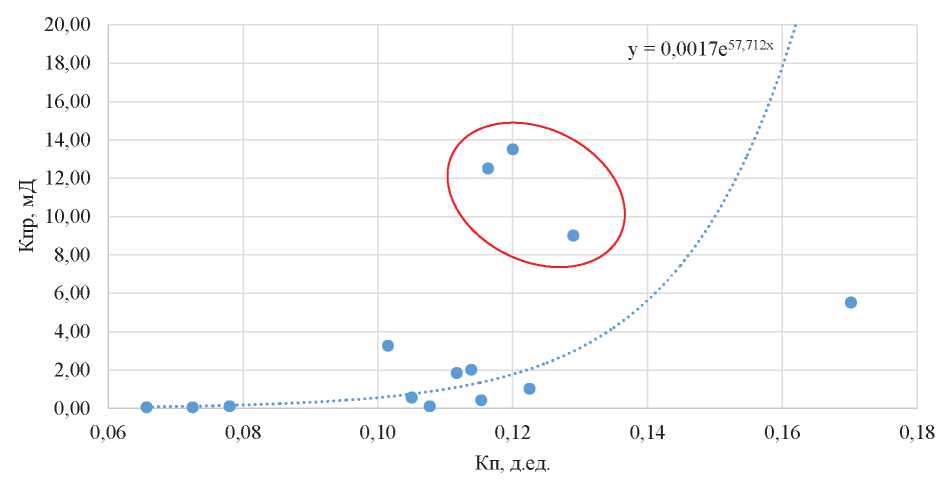 Рис. 3. Обобщенная зависимость фильтрационно-емкостных параметров нижней группы пластов ТП19-20 танопчинской свиты