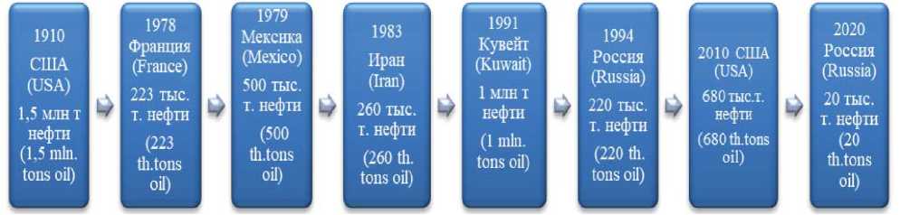 Fig. 1. Chronology of the largest oil spills in the world [compiled by the authors]