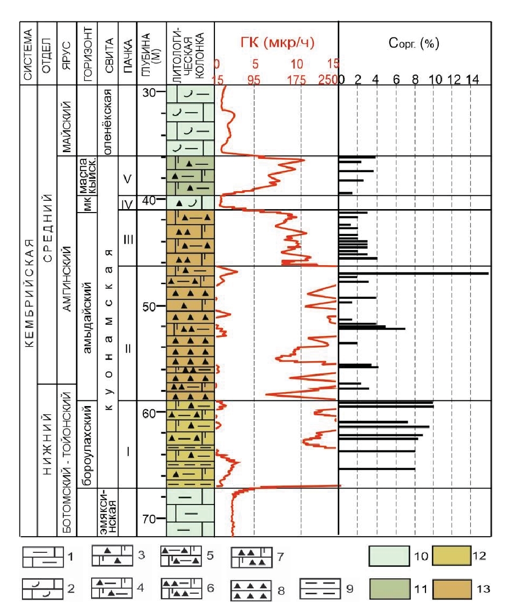 Анализ литолого-геохимических характеристик высокоуглеродистых отложений кембрия в бассейне р. Кюленке показал: