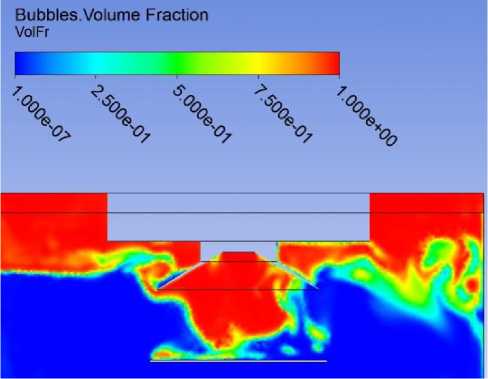 Fig. 9. Bubbles volume fraction in the area near the submerged burner (θ=120 s)