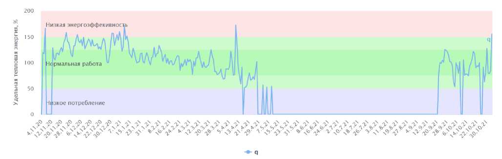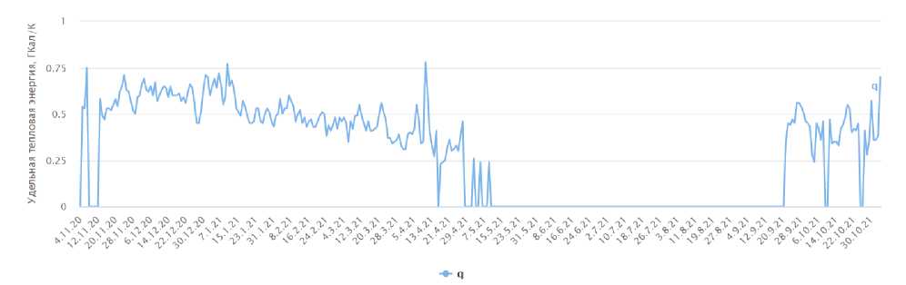 Рис. 5. График удельного теплопотребления рассматриваемой системы здания