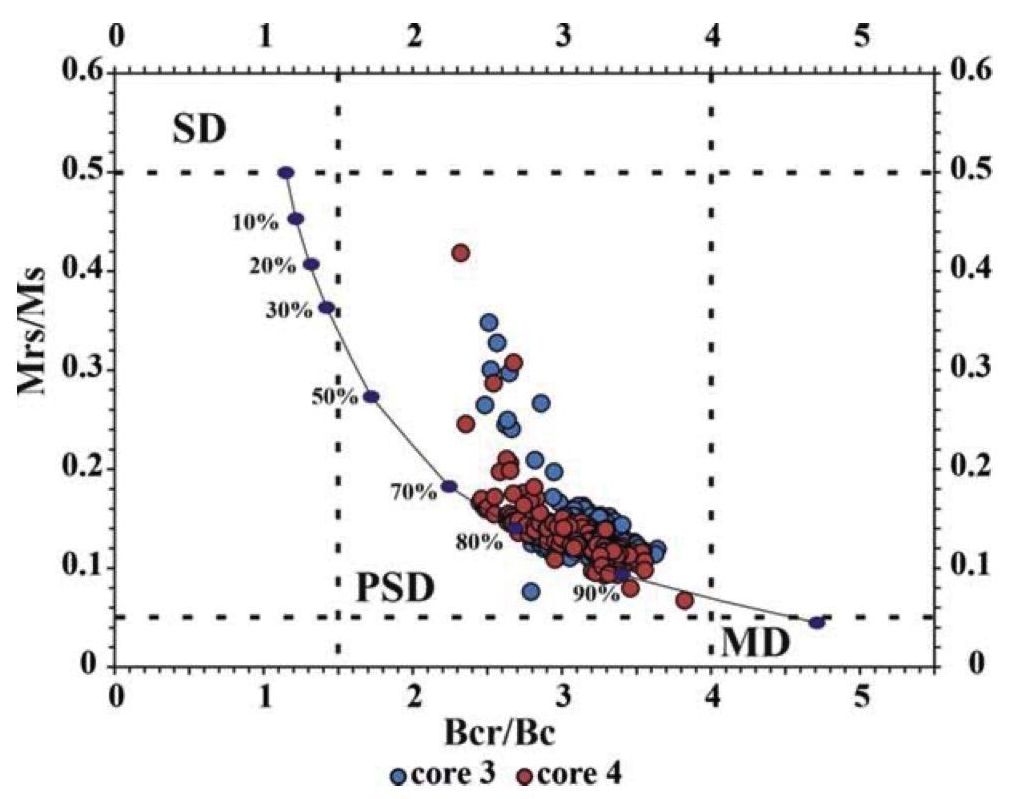 Alternatively, the proximity of the samples to the mixing curve implies that the magnetic grains could be a combination of SD and MD (PSD) grains with a MD proportion between 70 and 92% [15].
