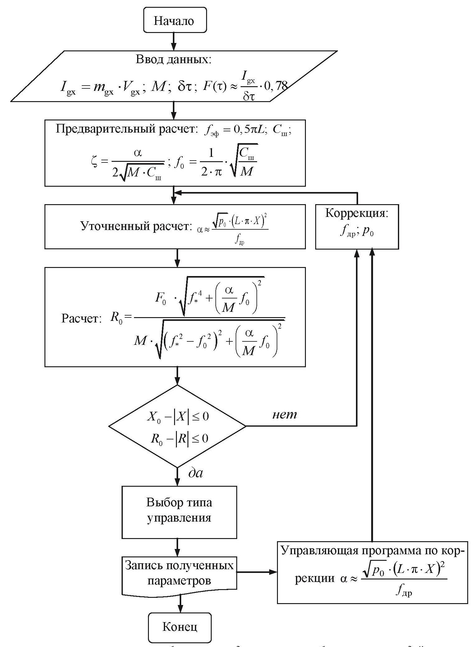 Рис. 7. Блок-схема расчета параметров виброзащиты для гашения вибрационного воздействия в источнике при силовом вибрационном возбуждении