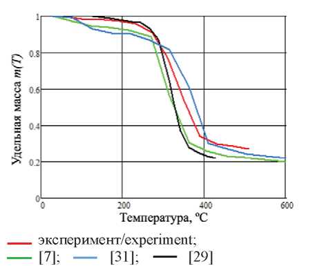 На рис. 7 проиллюстрировано сопоставление экспериментальных данных и расчетных кривых ТГА, полученных различными методами.