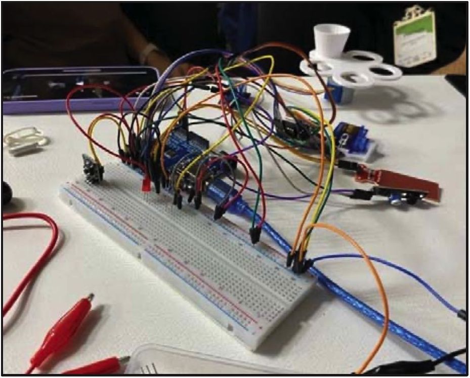 В качестве практического аспекта была создана упрощенная система автоматической сортировки мусора на основе имеющегося оборудования (рис. 8). Механизм системы работал исправно: распознав с помощью датчиков тип мусора, Arduino активировала мотор, который перемещал мусор в соответствующий контейнер.