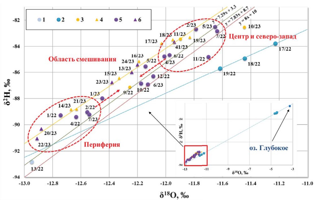 14/22 | оз. Глубокое/Lake Glubokoe | –2,32 | –4,45 | –48,36 |