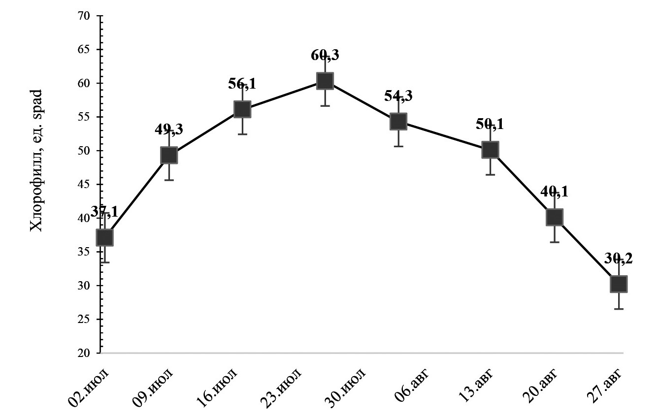 Биологическую устойчивость рассчитывали как отношение количества растений, сохранившихся к уборке, количеству высеянных семян. [8] Содержание хлорофилла в клетках листьев определяли с помощью оптического счетчика SPAD 502 (Minolta Camera Co, Ltd, Токио, Япония). На основании данных прибора, полученных измерением спектрального поглощения в двух диапазонах спектра, соответствующих поглощению хлорофилла, находится числовое значение SPAD, которое пропорционально содержанию хлорофилла в листьях. Измерение SPAD основано на оптической плотности, рассчитанной по поглощению листа на длине волны 650 нм (максимальное поглощение хлорофиллов a и b) и оптической плотности при 940 нм с учетом толщины листа. Прибор позволяет быстро оценивать общее содержание хлорофилла в листьях без изъятия растений из фитоценоза. [24]
