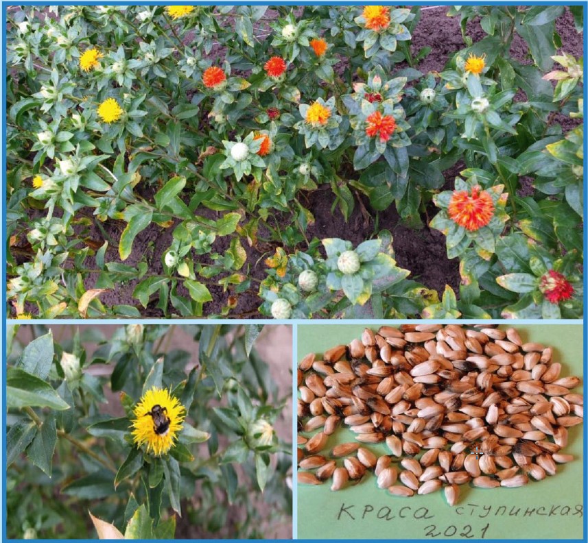 Известно, что важный элемент структуры урожая зерна сафлора – количество корзинок на каждом растении, число семян в корзинке и масса 1000 семян.