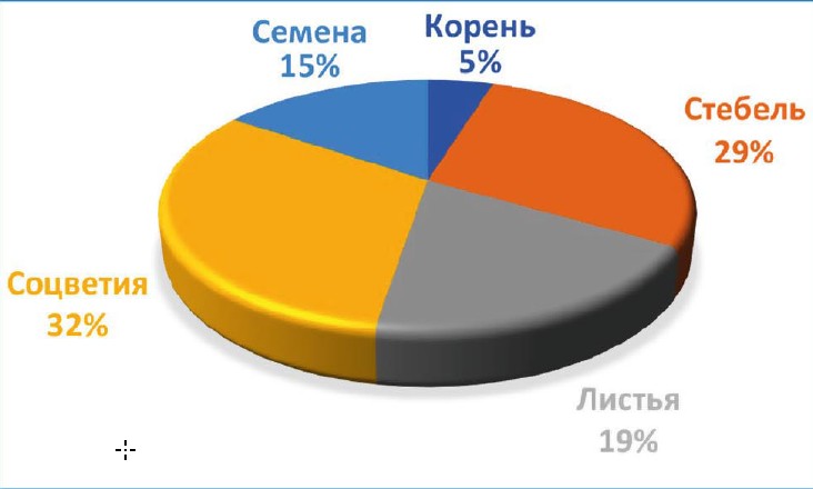 Соцветия | 20,5 ± 2,0 | 20,5 ± 1,5 | 60,4 ± 1,7 |