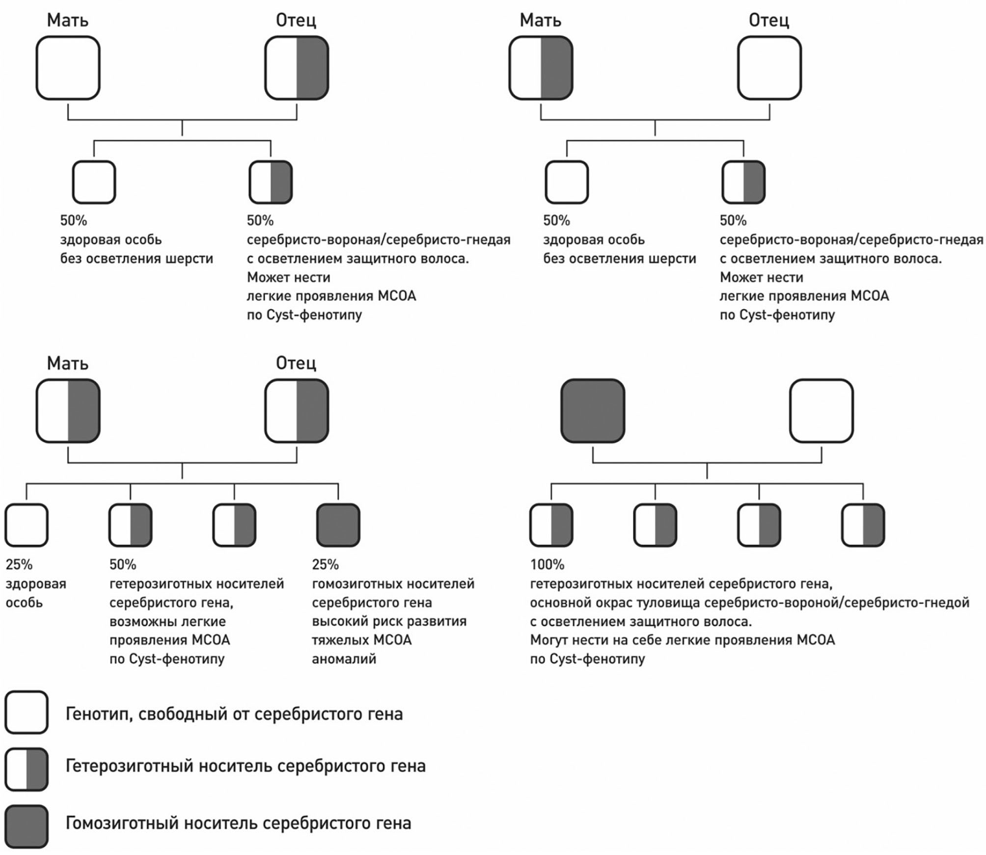 Рис. 1. Варианты наследования серебристого гена и сцепленных с ним MCOA.