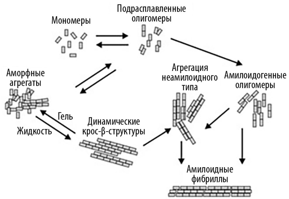 Рис. 4. Механизмы образования амилоидных фибрилл.