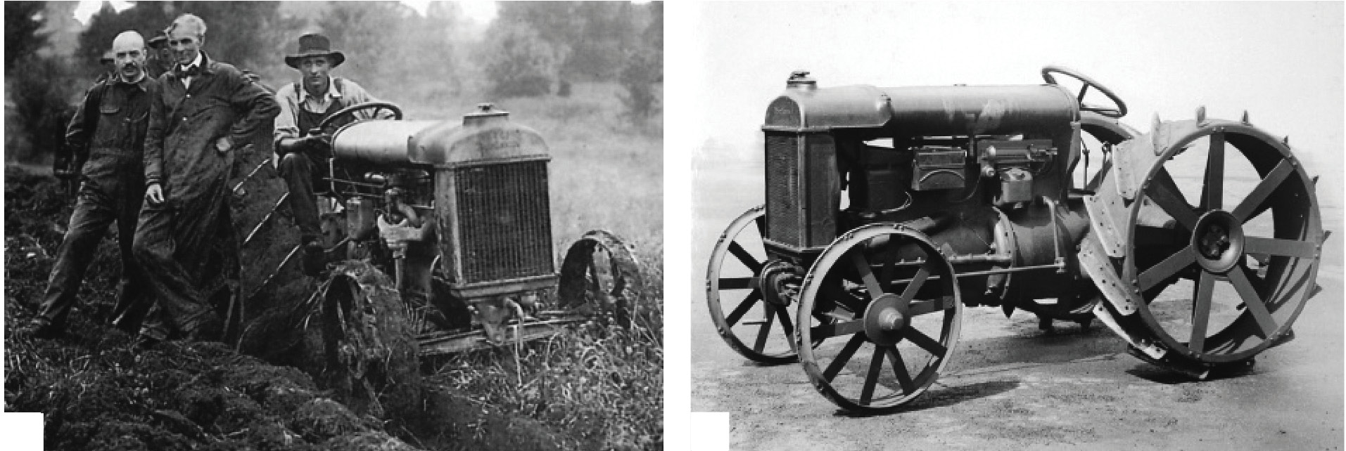 Рис. 2. Американский колесный трактор «Фордзон» конвейерной сборки: а) на пахоте (в центре Генри Форд), б) общий вид