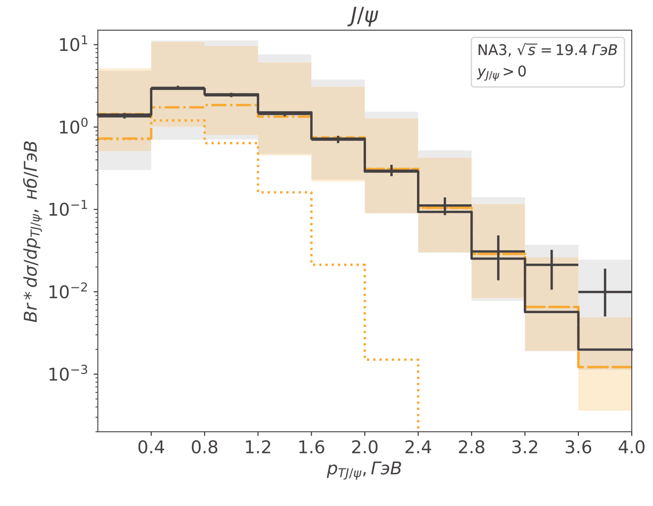 Принципиальную роль в описании спектров чармониев по поперечному импульсу играет выбор подхода факторизации эффектов физики жестких и мягких процессов. В области больших поперечных импульсов pT ≥ mC, когда можно пренебречь поперечными импульсами начальных партонов, процессы протон-протонного взаимодействия адекватно описываются в коллинеарной партонной модели (КПМ) [11]. Однако для описания спектров в области малых поперечных импульсов pT ≤ mC необходимо учитывать наличие малого поперечного импульса начальных партонов, непертурбативной природы, что достигается в подходе так называемой TMD - факторизации, т. е. факторизации, зависящей от поперечного импульса или в неколлинеарной партонной модели (нКПМ) [12]. Для описания экспериментальных данных в промежуточной области поперечных импульсов pT ~ mC используются различные процедуры "сшивания" результатов расчетов в КПМ и нКПМ [15] или феноменологический вариант нКМП – обобщенная партонная модель (ОПМ) [16].