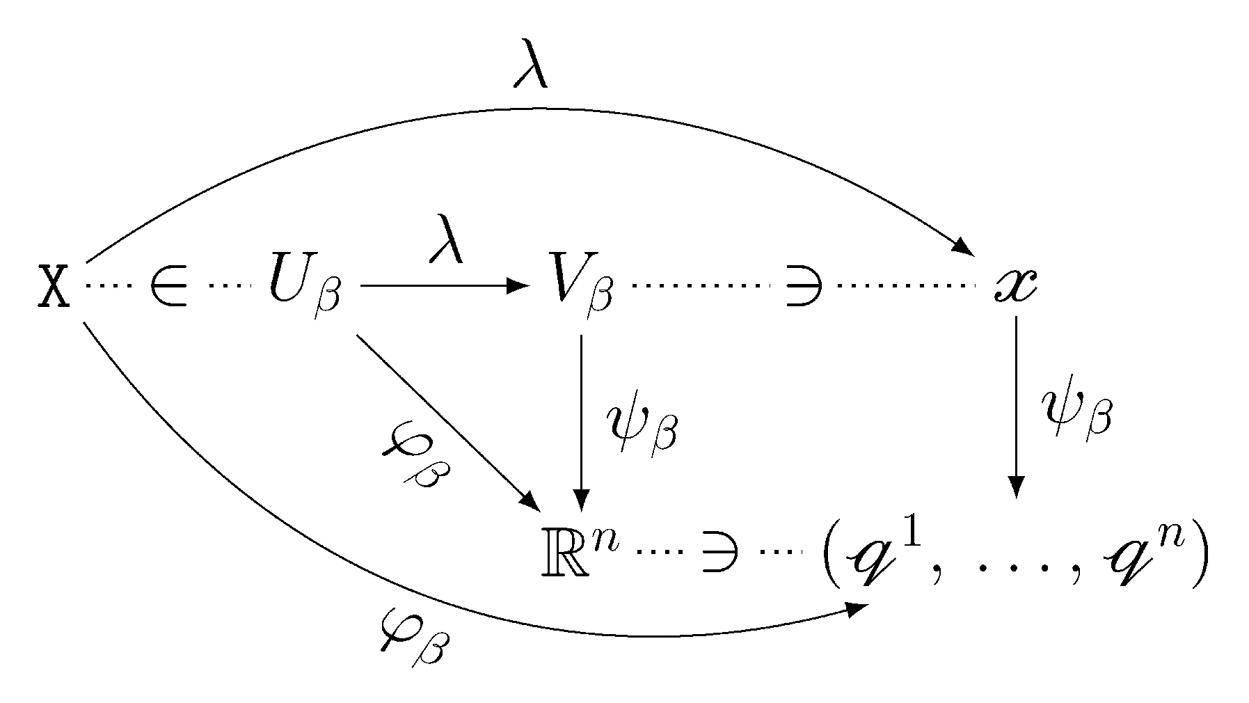 В работе используются следующие обозначения. Символ Hom(U;V) MathType@MTEF@5@5@+= feaahqart1ev3aaatCvAUfeBSjuyZL2yd9gzLbvyNv2CaerbuLwBLn hiov2DGi1BTfMBaeXatLxBI9gBaerbd9wDYLwzYbItLDharqqtubsr 4rNCHbGeaGqiVu0Je9sqqrpepC0xbbL8F4rqqrFfpeea0xe9Lq=Jc9 vqaqpepm0xbba9pwe9Q8fs0=yqaqpepae9pg0FirpepeKkFr0xfr=x fr=xb9adbaqaaeGaciGaaiaabeqaamaabaabaaGcqqaaaaaaaaGqSf 2yRbWdbeaapaGaaeisaiaab+gacaqGTbGaaGikamrr1ngBPrwtHrhA XaqeguuDJXwAKbstHrhAG8KBLbacfaGae8hfXxLaaG4oaiaaykW7cq WFveVvcaaIPaaaaa@4BAF@ обозначает векторное пространство всех линейных отображений UV MathType@MTEF@5@5@+= feaahqart1ev3aaatCvAUfeBSjuyZL2yd9gzLbvyNv2CaerbuLwBLn hiov2DGi1BTfMBaeXatLxBI9gBaerbd9wDYLwzYbItLDharqqtubsr 4rNCHbGeaGqiVu0Je9sqqrpepC0xbbL8F4rqqrFfpeea0xe9Lq=Jc9 vqaqpepm0xbba9pwe9Q8fs0=yqaqpepae9pg0FirpepeKkFr0xfr=x fr=xb9adbaqaaeGaciGaaiaabeqaamaabaabaaGcqqaaaaaaaaGqSf 2yRbWdbeaatuuDJXwAK1uy0HwmaeHbfv3ySLgzG0uy0Hgip5wzaGqb a8aacqWFueFvcqGHsgIRcqWFveVvaaa@473A@ , а символ End(U):=Hom(U;U) MathType@MTEF@5@5@+= feaahqart1ev3aaatCvAUfeBSjuyZL2yd9gzLbvyNv2CaerbuLwBLn hiov2DGi1BTfMBaeXatLxBI9gBaerbd9wDYLwzYbItLDharqqtubsr 4rNCHbGeaGqiVu0Je9sqqrpepC0xbbL8F4rqqrFfpeea0xe9Lq=Jc9 vqaqpepm0xbba9pwe9Q8fs0=yqaqpepae9pg0FirpepeKkFr0xfr=x fr=xb9adbaqaaeGaciGaaiaabeqaamaabaabaaGcqqaaaaaaaaGqSf 2yRbWdbeaapaGaaeyraiaab6gacaqGKbGaaGikamrr1ngBPrwtHrhA XaqeguuDJXwAKbstHrhAG8KBLbacfaGae8hfXxLaaGykaiaaiQdaca aI9aGaaeisaiaab+gacaqGTbGaaGikaiab=rr8vjaaiUdacaaMc8Ua e8hfXxLaaGykaaaa@531C@ MathType@MTEF@5@5@+= feaahqart1ev3aqatCvAUfeBSjuyZL2yd9gzLbvyNv2CaerbuLwBLn hiov2DGi1BTfMBaeXatLxBI9gBaerbd9wDYLwzYbItLDharqqtubsr 4rNCHbGeaGqiVu0Je9sqqrpepC0xbbL8F4rqqrFfpeea0xe9Lq=Jc9 vqaqpepm0xbba9pwe9Q8fs0=yqaqpepae9pg0FirpepeKkFr0xfr=x fr=xb9adbaqaaeGaciGaaiaabeqaamaabaabaaGcqqaaaaaaaaGqSf 2yRbWdbeaaruWqHXwAIjxAaGqbaKqzGfaeaaaaaaaaa8GacaWFuaca aa@3C73@ векторное пространство линейных операторов VV MathType@MTEF@5@5@+= feaahqart1ev3aaatCvAUfeBSjuyZL2yd9gzLbvyNv2CaerbuLwBLn hiov2DGi1BTfMBaeXatLxBI9gBaerbd9wDYLwzYbItLDharqqtubsr 4rNCHbGeaGqiVu0Je9sqqrpepC0xbbL8F4rqqrFfpeea0xe9Lq=Jc9 vqaqpepm0xbba9pwe9Q8fs0=yqaqpepae9pg0FirpepeKkFr0xfr=x fr=xb9adbaqaaeGaciGaaiaabeqaamaabaabaaGcqqaaaaaaaaGqSf 2yRbWdbeaatuuDJXwAK1uy0HwmaeHbfv3ySLgzG0uy0Hgip5wzaGqb a8aacqWFveVvcqGHsgIRcqWFveVvaaa@473C@ . Пусть M MathType@MTEF@5@5@+= feaahqart1ev3aaatCvAUfeBSjuyZL2yd9gzLbvyNv2CaerbuLwBLn hiov2DGi1BTfMBaeXatLxBI9gBaerbd9wDYLwzYbItLDharqqtubsr 4rNCHbGeaGqiVu0Je9sqqrpepC0xbbL8F4rqqrFfpeea0xe9Lq=Jc9 vqaqpepm0xbba9pwe9Q8fs0=yqaqpepae9pg0FirpepeKkFr0xfr=x fr=xb9adbaqaaeGaciGaaiaabeqaamaabaabaaGcqqaaaaaaaaGqSf 2yRbWdbeaapaGaamytaaaa@38D5@ MathType@MTEF@5@5@+= feaahqart1ev3aqatCvAUfeBSjuyZL2yd9gzLbvyNv2CaerbuLwBLn hiov2DGi1BTfMBaeXatLxBI9gBaerbd9wDYLwzYbItLDharqqtubsr 4rNCHbGeaGqiVu0Je9sqqrpepC0xbbL8F4rqqrFfpeea0xe9Lq=Jc9 vqaqpepm0xbba9pwe9Q8fs0=yqaqpepae9pg0FirpepeKkFr0xfr=x fr=xb9adbaqaaeGaciGaaiaabeqaamaabaabaaGcqqaaaaaaaaGqSf 2yRbWdbeaaruWqHXwAIjxAaGqbaKqzGfaeaaaaaaaaa8GacaWFuaca aa@3C73@ гладкое многообразие. Алгебра гладких функций M MathType@MTEF@5@5@+= feaahqart1ev3aaatCvAUfeBSjuyZL2yd9gzLbvyNv2CaerbuLwBLn hiov2DGi1BTfMBaeXatLxBI9gBaerbd9wDYLwzYbItLDharqqtubsr 4rNCHbGeaGqiVu0Je9sqqrpepC0xbbL8F4rqqrFfpeea0xe9Lq=Jc9 vqaqpepm0xbba9pwe9Q8fs0=yqaqpepae9pg0FirpepeKkFr0xfr=x fr=xb9adbaqaaeGaciGaaiaabeqaamaabaabaaGcqqaaaaaaaaGqSf 2yRbWdbeaapaGaamytaiabgkziUorr1ngBPrwtHrhAYaqeguuDJXwA KbstHrhAGq1DVbacfaGae8xhHifaaa@457A@ на нем обозначается символом C (M) MathType@MTEF@5@5@+= feaahqart1ev3aaatCvAUfeBSjuyZL2yd9gzLbvyNv2CaerbuLwBLn hiov2DGi1BTfMBaeXatLxBI9gBaerbd9wDYLwzYbItLDharqqtubsr 4rNCHbGeaGqiVu0Je9sqqrpepC0xbbL8F4rqqrFfpeea0xe9Lq=Jc9 vqaqpepm0xbba9pwe9Q8fs0=yqaqpepae9pg0FirpepeKkFr0xfr=x fr=xb9adbaqaaeGaciGaaiaabeqaamaabaabaaGcqqaaaaaaaaGqSf 2yRbWdbeaapaGaam4qamaaCaaaleqabaGaeyOhIukaaOGaaGikaiaa d2eacaaIPaaaaa@3CAA@ . Касательное пространство к M MathType@MTEF@5@5@+= feaahqart1ev3aaatCvAUfeBSjuyZL2yd9gzLbvyNv2CaerbuLwBLn hiov2DGi1BTfMBaeXatLxBI9gBaerbd9wDYLwzYbItLDharqqtubsr 4rNCHbGeaGqiVu0Je9sqqrpepC0xbbL8F4rqqrFfpeea0xe9Lq=Jc9 vqaqpepm0xbba9pwe9Q8fs0=yqaqpepae9pg0FirpepeKkFr0xfr=x fr=xb9adbaqaaeGaciGaaiaabeqaamaabaabaaGcqqaaaaaaaaGqSf 2yRbWdbeaapaGaamytaaaa@38D5@ в точке p MathType@MTEF@5@5@+= feaahqart1ev3aaatCvAUfeBSjuyZL2yd9gzLbvyNv2CaerbuLwBLn hiov2DGi1BTfMBaeXatLxBI9gBaerbd9wDYLwzYbItLDharqqtubsr 4rNCHbGeaGqiVu0Je9sqqrpepC0xbbL8F4rqqrFfpeea0xe9Lq=Jc9 vqaqpepm0xbba9pwe9Q8fs0=yqaqpepae9pg0FirpepeKkFr0xfr=x fr=xb9adbaqaaeGaciGaaiaabeqaamaabaabaaGcqqaaaaaaaaGqSf 2yRbWdbeaapaGaamiCaaaa@38F8@ обозначается через T p M MathType@MTEF@5@5@+= feaahqart1ev3aaatCvAUfeBSjuyZL2yd9gzLbvyNv2CaerbuLwBLn hiov2DGi1BTfMBaeXatLxBI9gBaerbd9wDYLwzYbItLDharqqtubsr 4rNCHbGeaGqiVu0Je9sqqrpepC0xbbL8F4rqqrFfpeea0xe9Lq=Jc9 vqaqpepm0xbba9pwe9Q8fs0=yqaqpepae9pg0FirpepeKkFr0xfr=x fr=xb9adbaqaaeGaciGaaiaabeqaamaabaabaaGcqqaaaaaaaaGqSf 2yRbWdbeaapaGaamivamaaBaaaleaacaWGWbaabeaakiaad2eaaaa@3AD9@ и в зависимости от ситуации рассматривается либо как класс эквивалентных кривых, либо как пространство дифференцирований скалярных функций. Кокасательное пространство, являющееся векторным пространством, дуальным к T p M MathType@MTEF@5@5@+= feaahqart1ev3aaatCvAUfeBSjuyZL2yd9gzLbvyNv2CaerbuLwBLn hiov2DGi1BTfMBaeXatLxBI9gBaerbd9wDYLwzYbItLDharqqtubsr 4rNCHbGeaGqiVu0Je9sqqrpepC0xbbL8F4rqqrFfpeea0xe9Lq=Jc9 vqaqpepm0xbba9pwe9Q8fs0=yqaqpepae9pg0FirpepeKkFr0xfr=x fr=xb9adbaqaaeGaciGaaiaabeqaamaabaabaaGcqqaaaaaaaaGqSf 2yRbWdbeaapaGaamivamaaBaaaleaacaWGWbaabeaakiaad2eaaaa@3AD9@ , обозначается символом T p M MathType@MTEF@5@5@+= feaahqart1ev3aaatCvAUfeBSjuyZL2yd9gzLbvyNv2C
