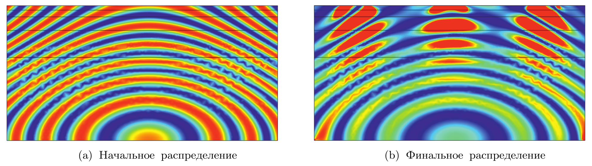 Рис. 6: Плотность распределения дефектов в начале и в конце процесса контактного взаимодействия