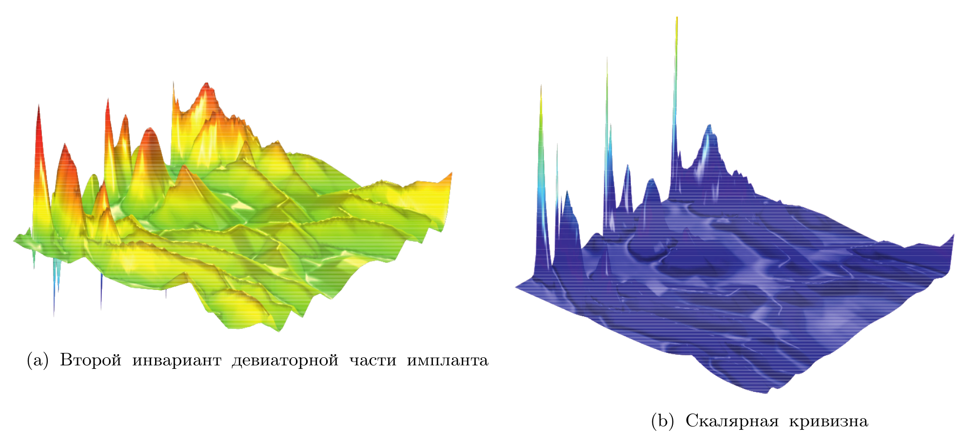 Несколько слов следует сказать о вычислении производных второго и третьего порядков, требуемых для вычисления связности и кривизны по полю импланта, определяемого из конечноэлементного расчета. Непосредственное дифференцирование кусочно-линейной аппроксимации ничего, кроме нулевых (либо несуществующих) значений, не даст, и для вычисления производных требуется иной подход. При построении алгоритма производные вычислялись как проекции на специальные базисные функции, т. е. процедура дифференцирования заменялась интегрированием по объему тела. Базисные функции определялись как элементы системы, биортогональной к элементарным мономам (). Биортогональность понималась в смысле квадратичной метрики пространства функций, задаваемых над областью, занимаемой промежуточной формой.