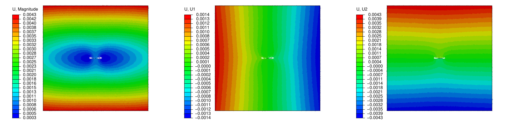 Fig. 2.2. Distribution of displacement fields: total displacement, horizontal displacement, vertical displacement