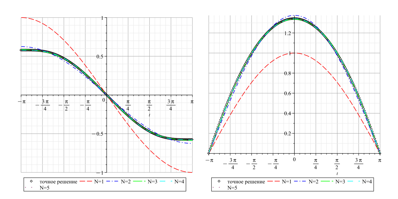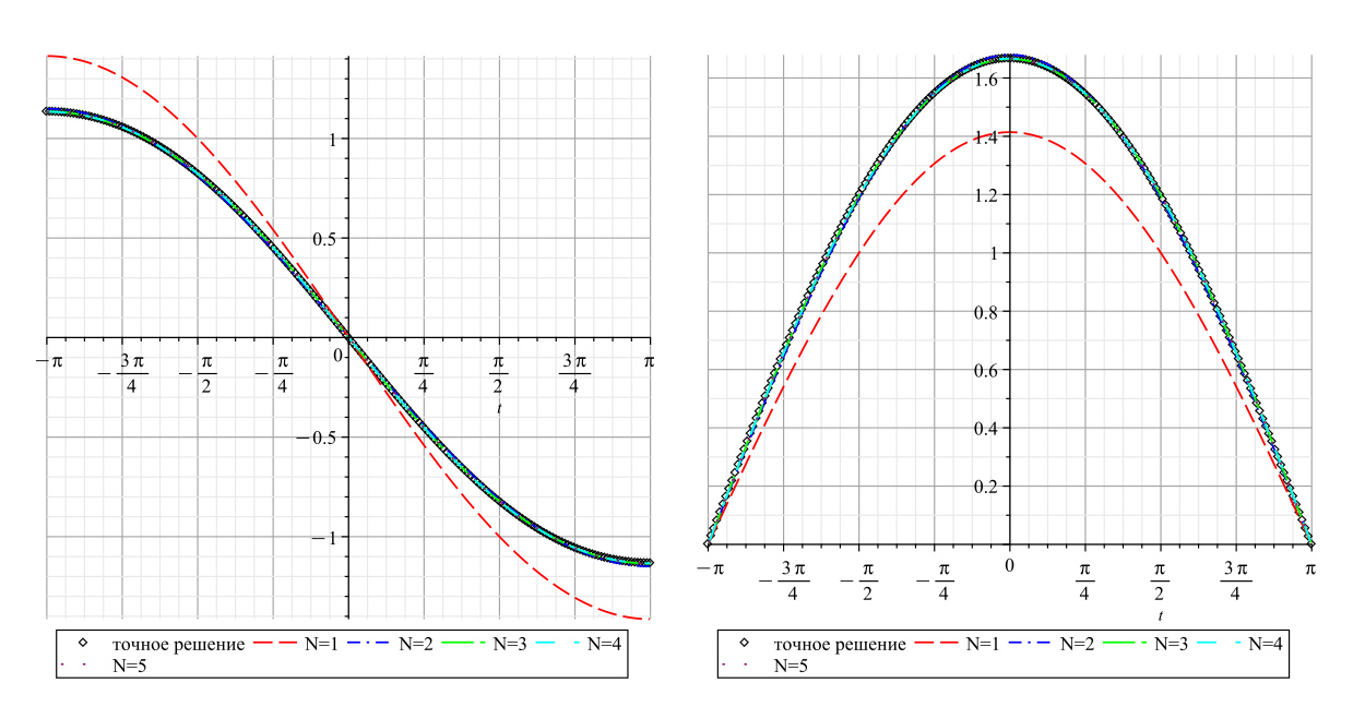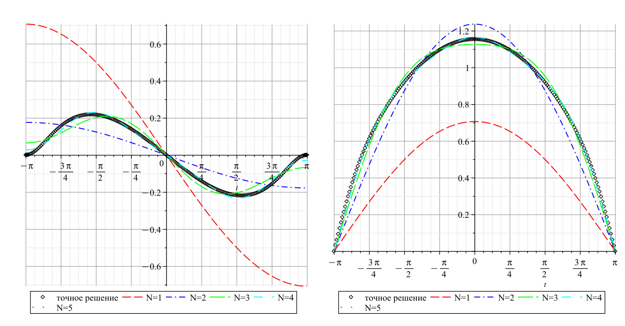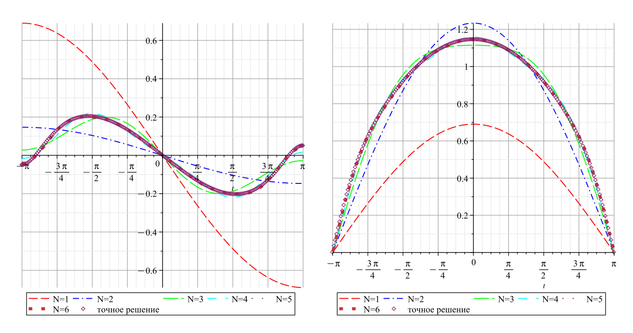 Fig. 2.1. Angular dependences of the stress components (1): σ13 (left) и σ23 (right)